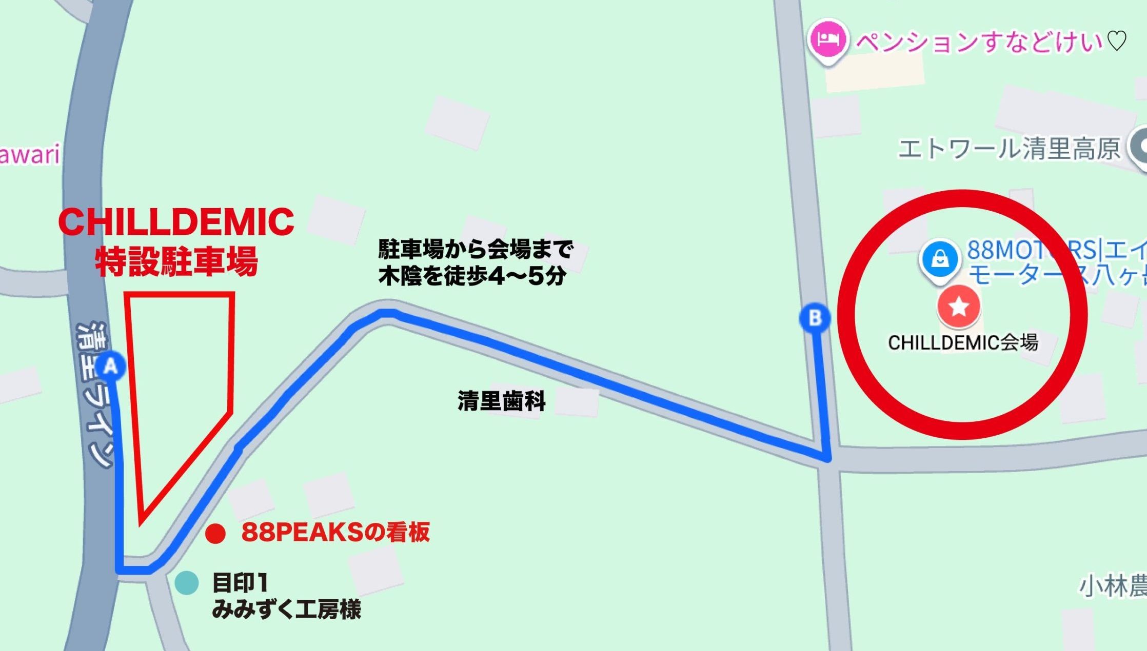 イベント当日は、通常ご利用の88PEAKS駐車場はフードエリアとして使用されます。